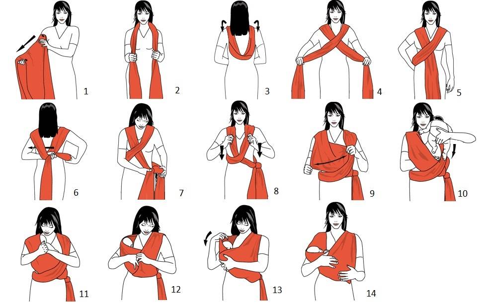 Прежде, чем положить ребенка в шарф, нужно потренироваться завязывать и фиксировать изделие