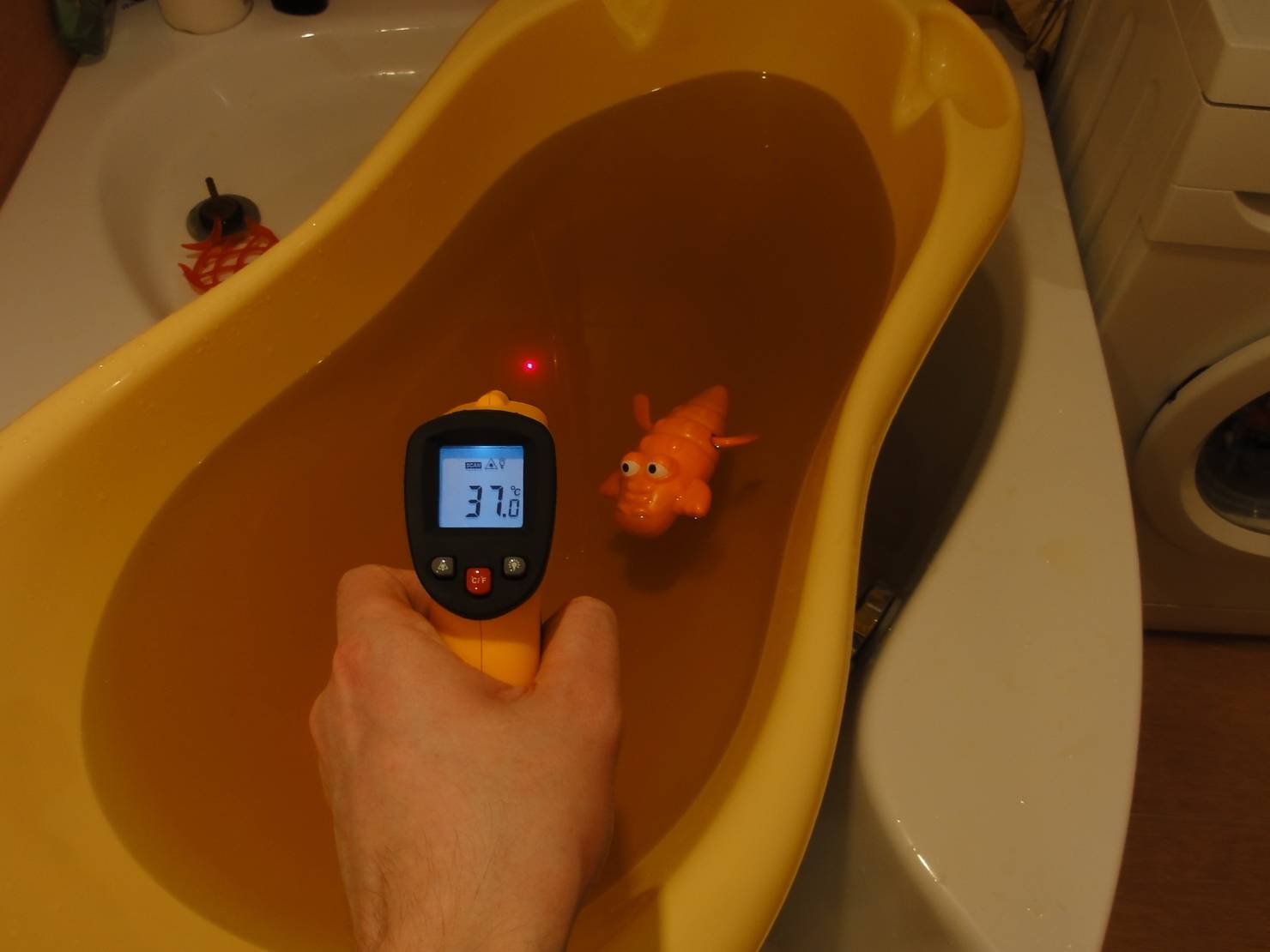 Проверка температуры воды в ванночке