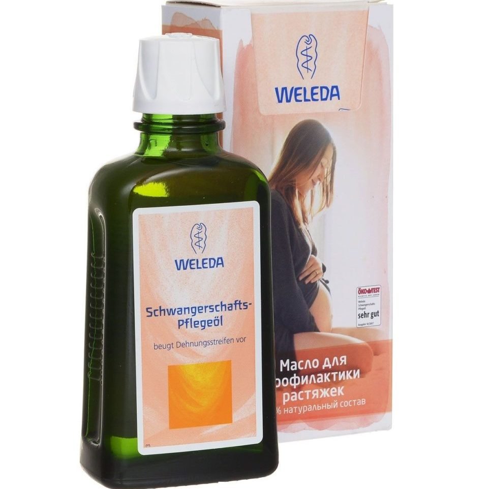 Масло Веледа используется для регулярного массажа проблемных зон, склонных к появлению растяжек в период до и после родов.