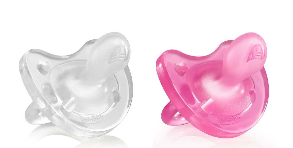 - Chicco — итальянская марка, также пользуется популярностью в нашей стране. Безопасность материалов, из которых производят пустышки, доказана клинически. На полках магазинов можно найти анатомические и ортодонтические пустышки из латекса и силикона.