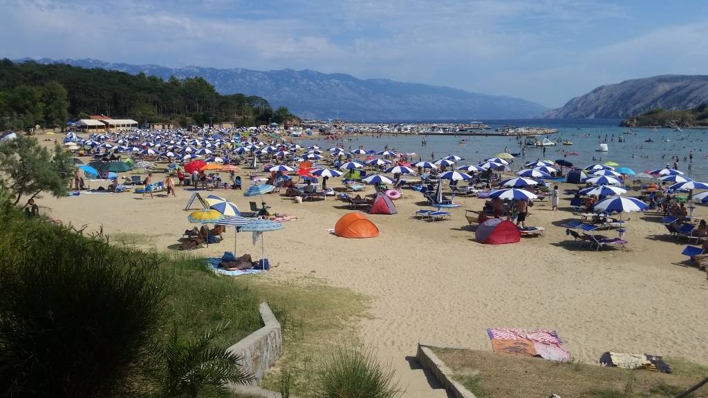 Названия этого места говорит само за себя. Почти два километра чистейшего побережья, окружённого рощей хвойных деревьев, чистое и тёплое море, отмеченное Голубым флагом, небольшая глубина и удобный заход в воду – этот песчаный пляж является подходящим местом для путешественников с детьми в Хорватии.
