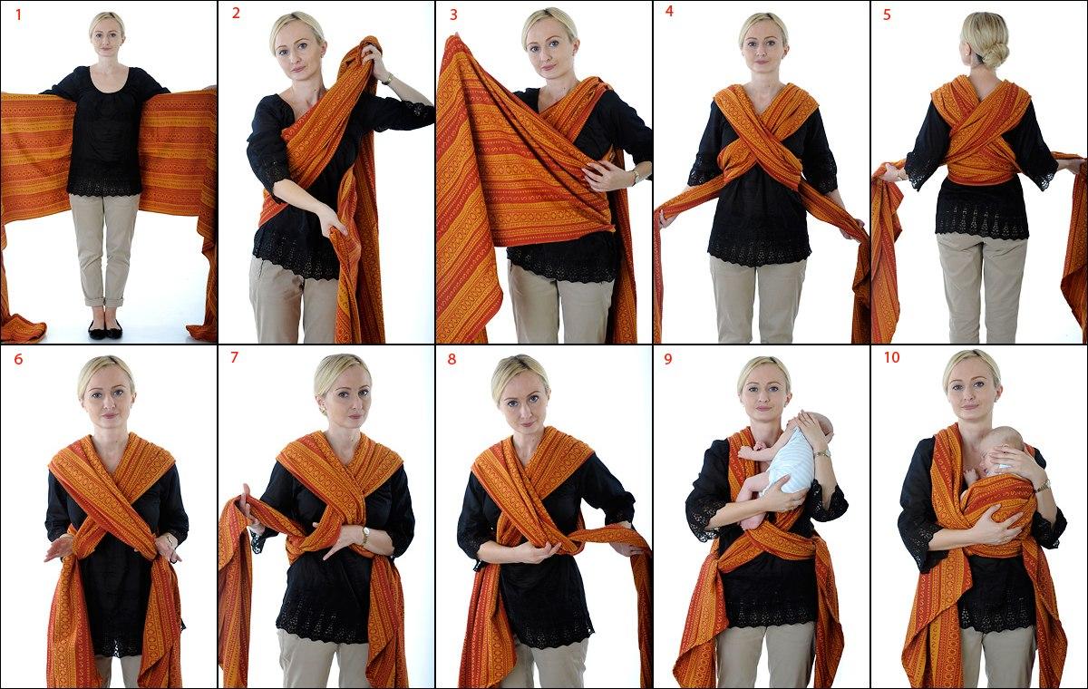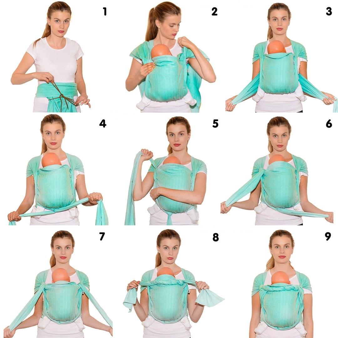 - Молодым мамочкам потребуется много практики, чтобы научиться правильно наматывать ткань. Существует множество пособий, которые помогут освоить все тонкости, однако придется потратить немало времени и усилий.