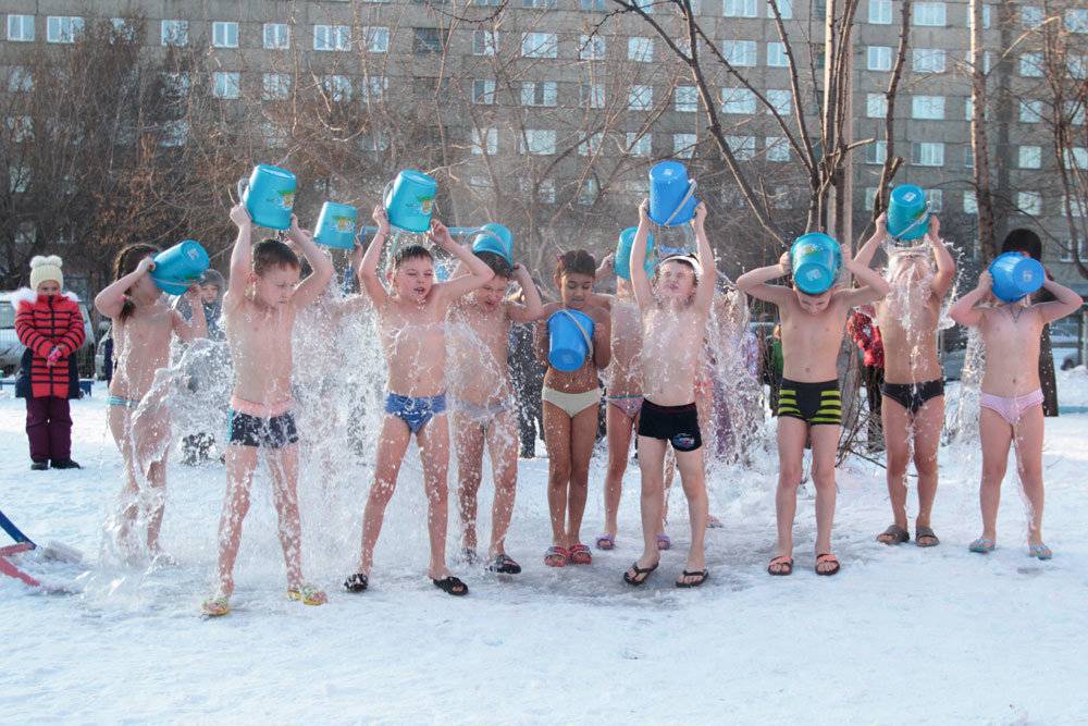 Детей можно окунать в прохладную воду с рождения. При этом кто-нибудь из родителей должен окунаться вместе с ребёнком, прижимая его к груди. Начинать следует с 1-2 секунд.