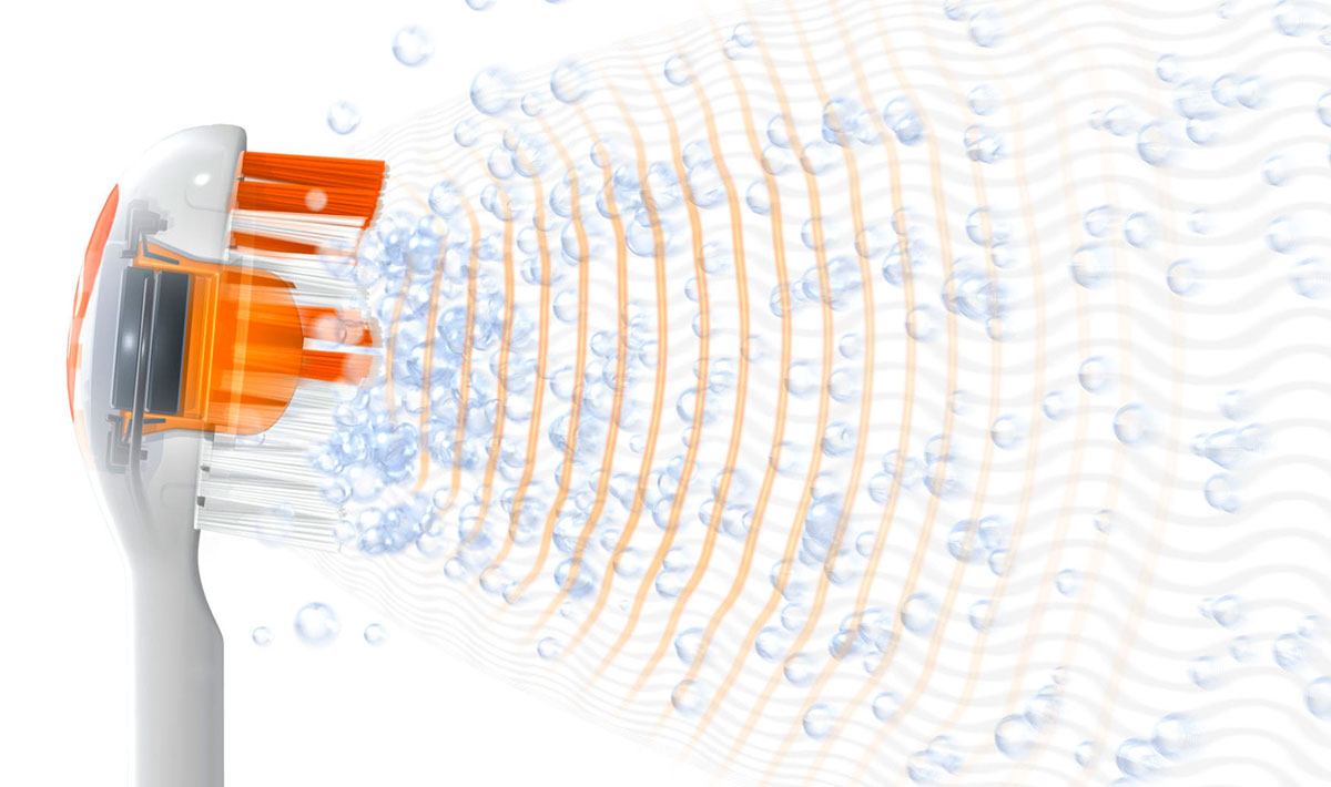Эта ультразвуковая щетка оснащена уникальным таймером, который проконтролирует чистку шести зон челюсти, сигнализируя каждые тридцать секунд о смене местоположения щетки. Вся процедура рассчитана на три минуты.